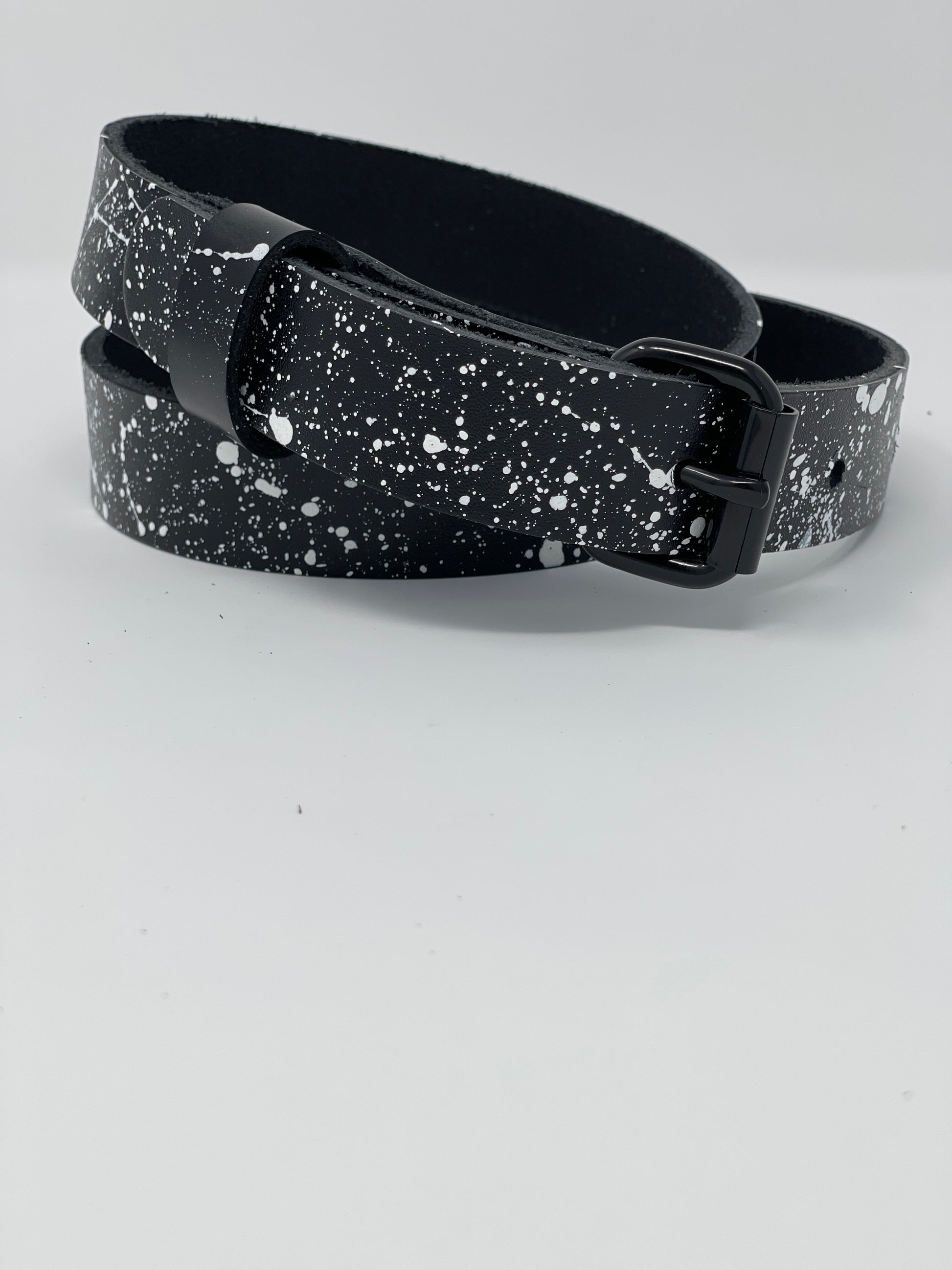 Le Belt 1" Classic Leather Belt - Le Splat Black/White Edition