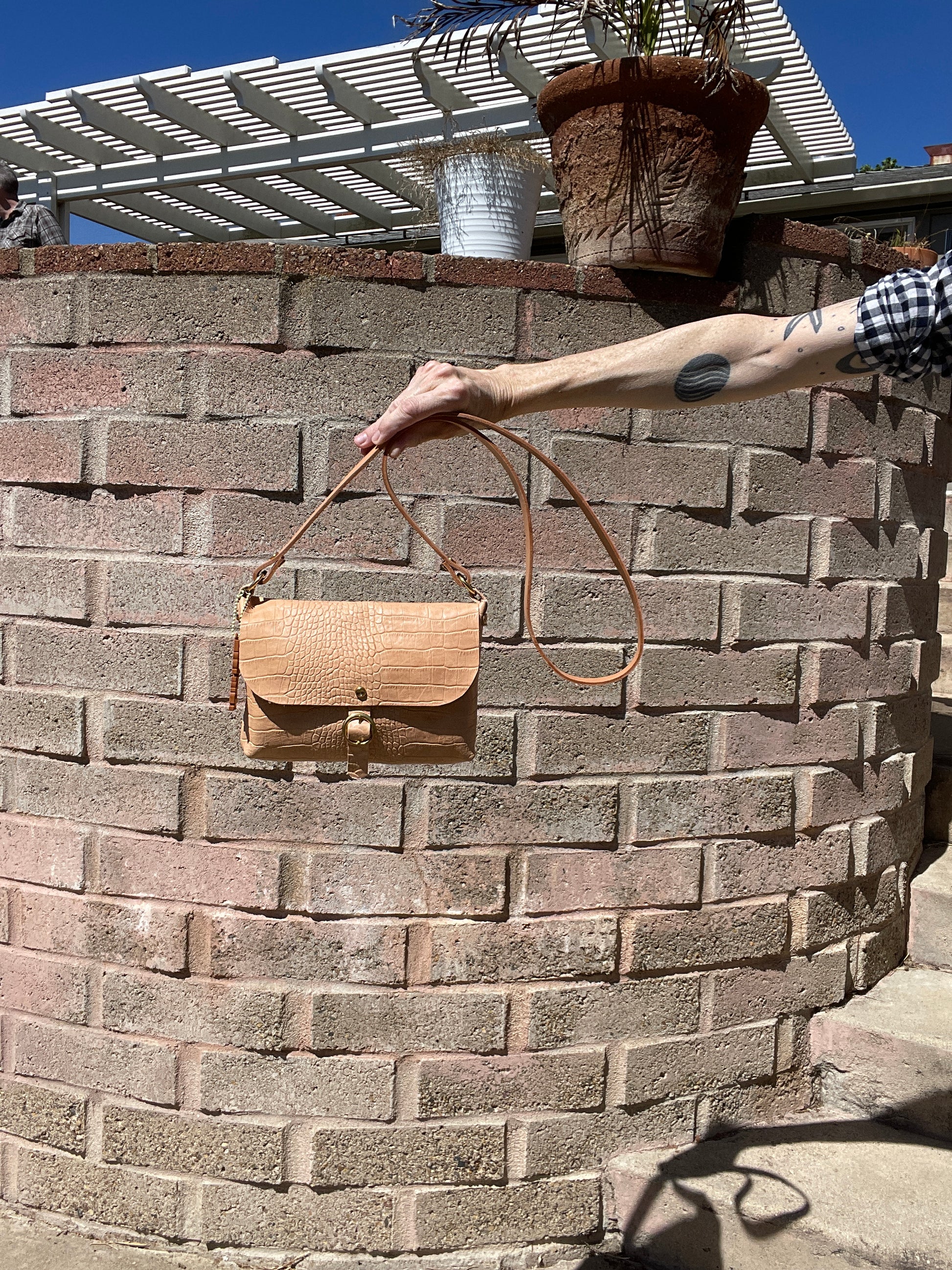 Natural Veg Tan Reptile Embossed Small Crossbody Messenger Bag