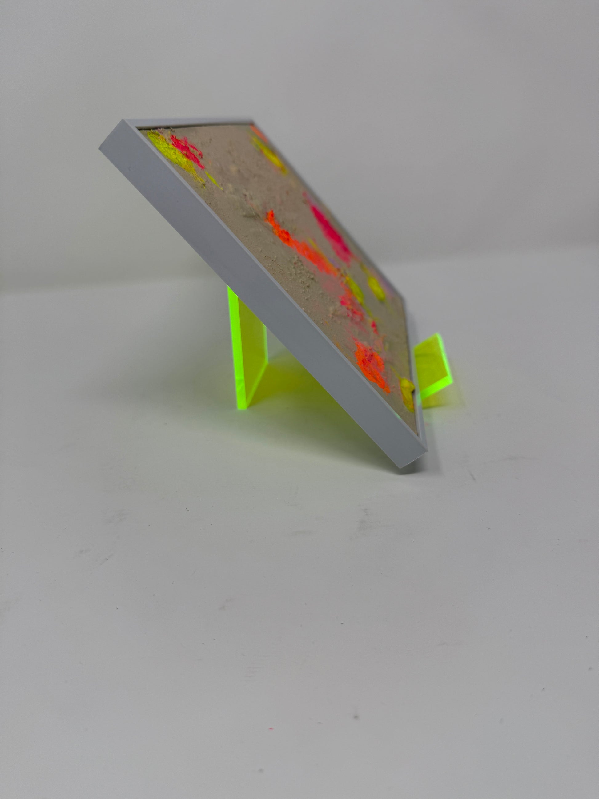 Elevate your art display with our Neon Acrylic Display Stand. Crafted with sleek neon acrylic, this stand adds a modern touch to showcasing your small art pieces. Let your art shine with this exclusive stand that is sure to impress.