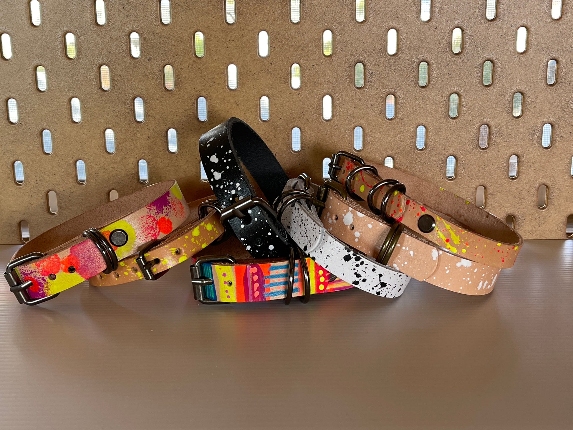 Now your pet can be as stylish as you are in Le Shack's leather pet collar. These are all hand painted so the pattern will vary on each one. We use high quality hardware and minimal finishing for a classic, understated look that will improve with age and use.